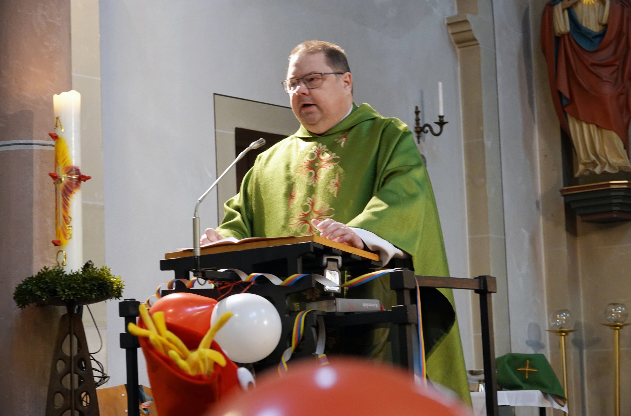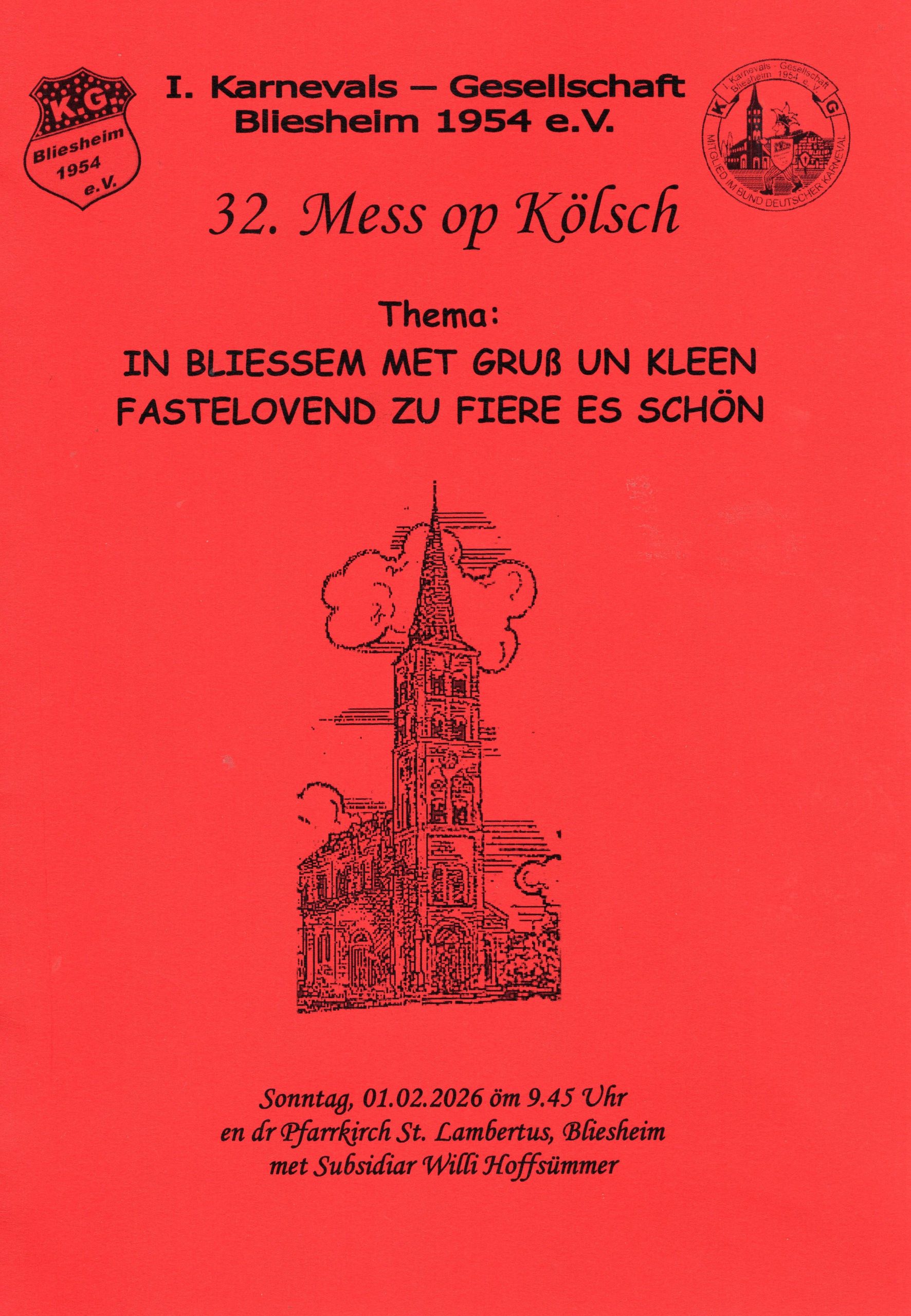 Am Sonntag, den 1. Februar, fand unter einem inspirierenden Motto die 32. Kölsche Mess der 1.KG Bliesheim 1954 e.V. statt. Dieses Mal gab es allerdings keine Tollitäten von der 1.KG Bliesheim oder der Erich Kästner Grundschule. Pastor Hoffsümmer, der sonst regelmäßig die Messe zelebrierte, konnte krankheitsbedingt nicht teilnehmen. Stattdessen sprang kurzfristig Pfarrvikar Jürgen Arnols aus Liblar ein. Mit Freude und Engagement hielt er die Messe in unserer Kölschen Sproch und bereicherte sie mit einer kurzen, treffenden Predigt.