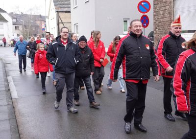 Im Anschluss an die Kölsche Messe versammelte man sich zum Frühschoppen im Dorfgemeinschaftshaus „Em Dörp“. Hier hatte die 1.KG Bliesheim alle Mitglieder und Freunde des Bliessemer Fastelovend eingeladen.